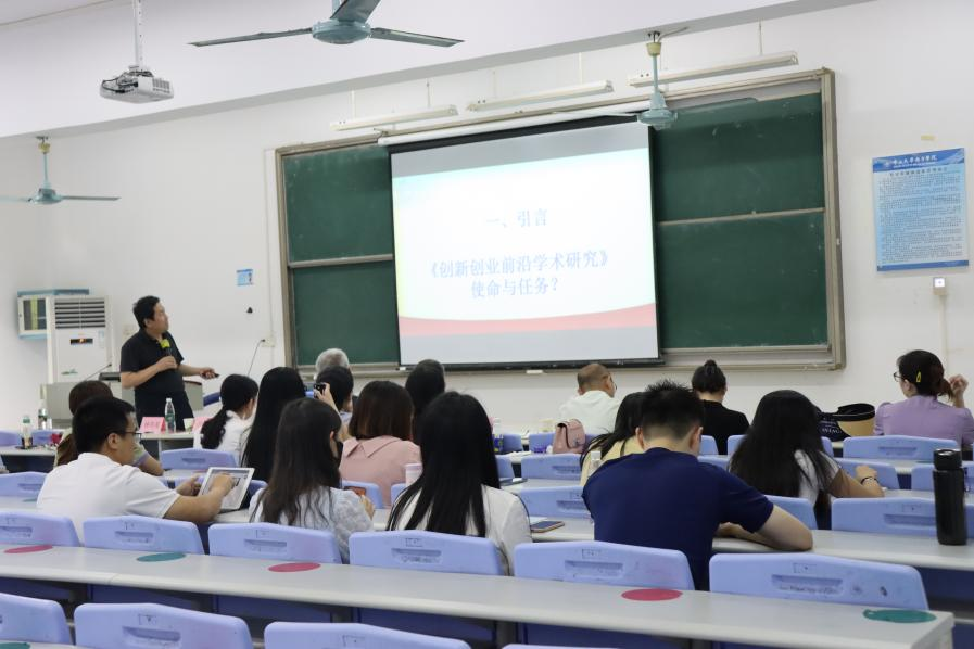 6月14日下午,中山大学管理学院教授、博士生导师、教育部信息与就业中心特聘双创专家任荣伟教授在5教104教室作题为“创新创业前沿理论学术研究”的学术讲座。太阳成集团tyc7111执行院长卫建国、教务处处长钟肖英、太阳成集团tyc7111副院长董成杰、财务学系顾问张晓峰、各系主任及全体青年教师参加了本次会议。