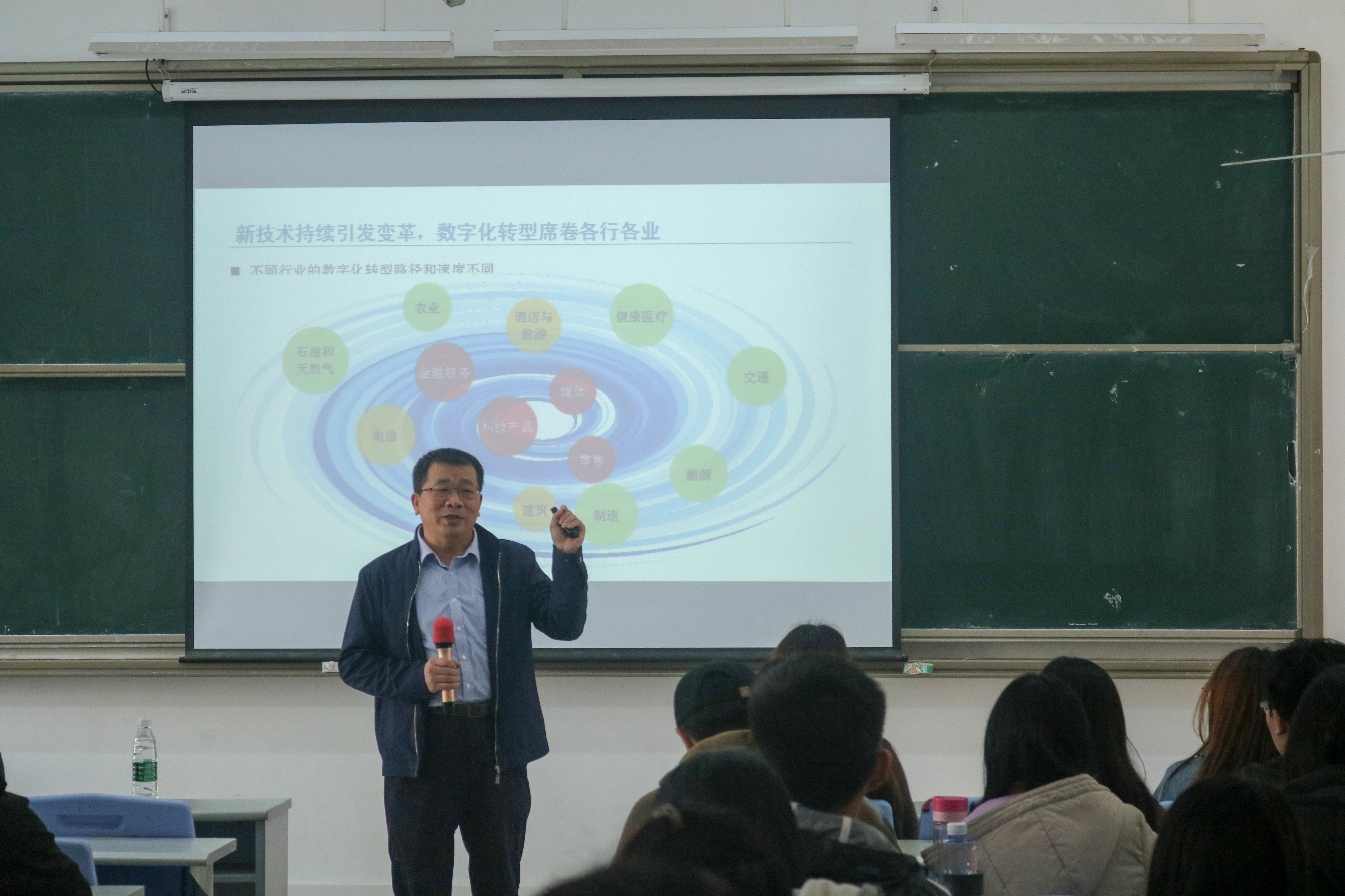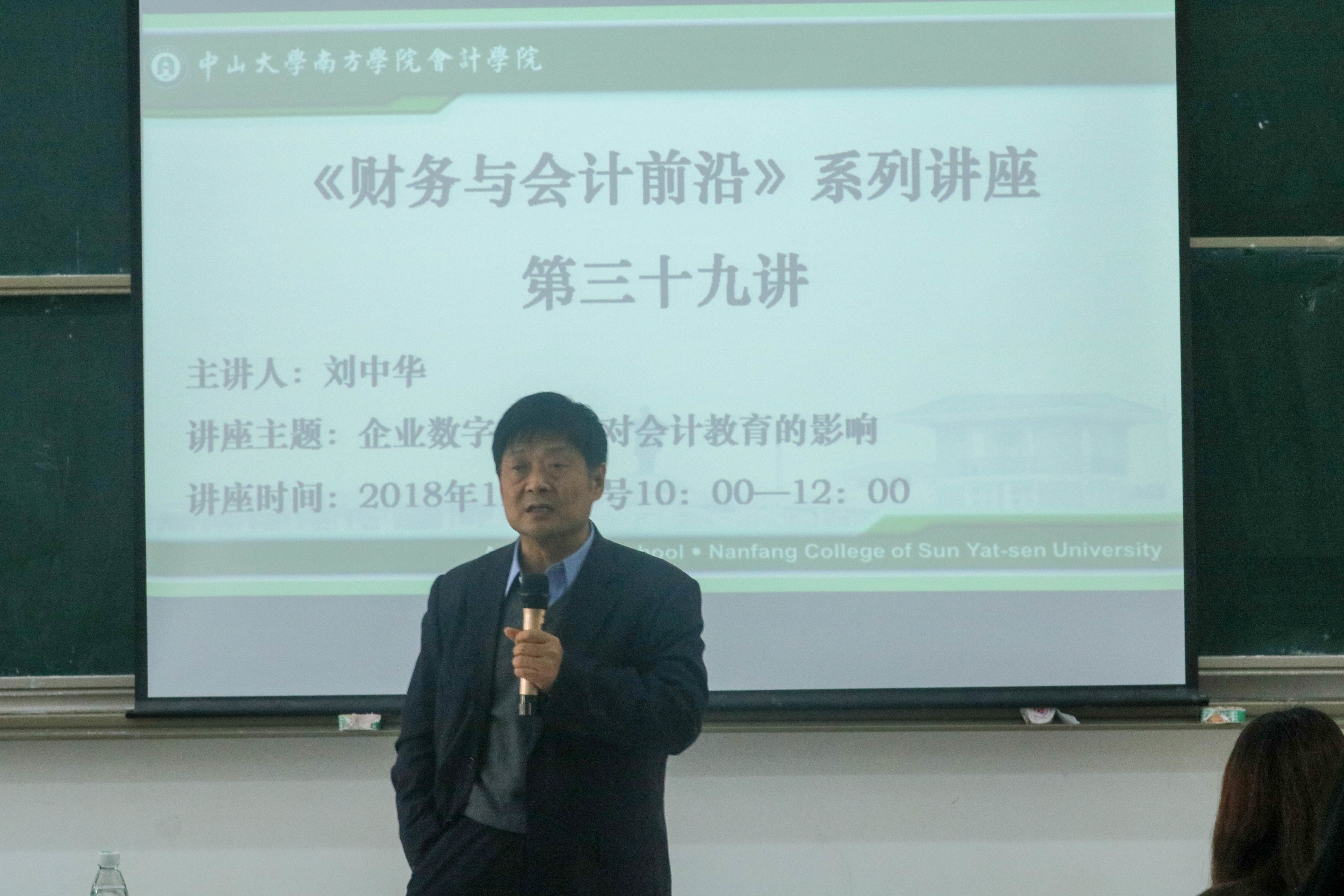 2018年12月16日上午,广东外语外贸大学刘中华教授应邀做客我院《财务与会计前沿讲座》,为我院学子带来了一场题为“企业数字化转型对会计教育的影响”的精彩讲座。太阳成集团tyc7111执行院长卫建国、办公室主任宋得福等300余人参加了本次讲座。该讲座由太阳成集团tyc7111执行院长卫建国主持。