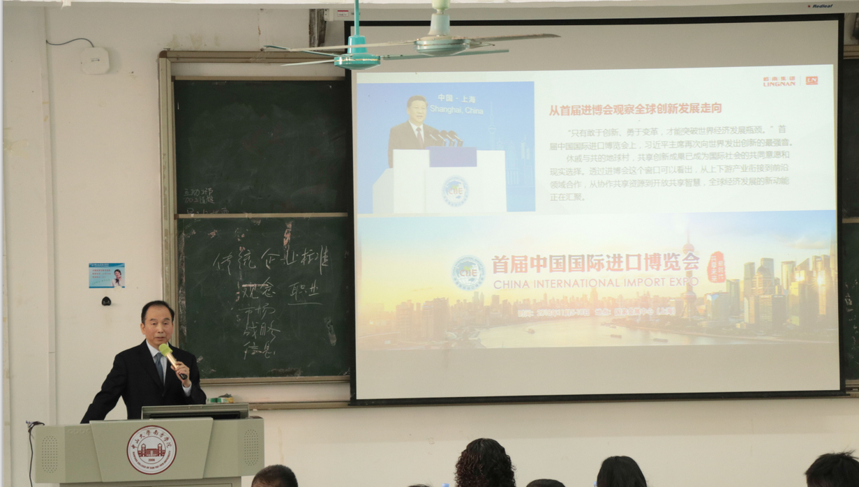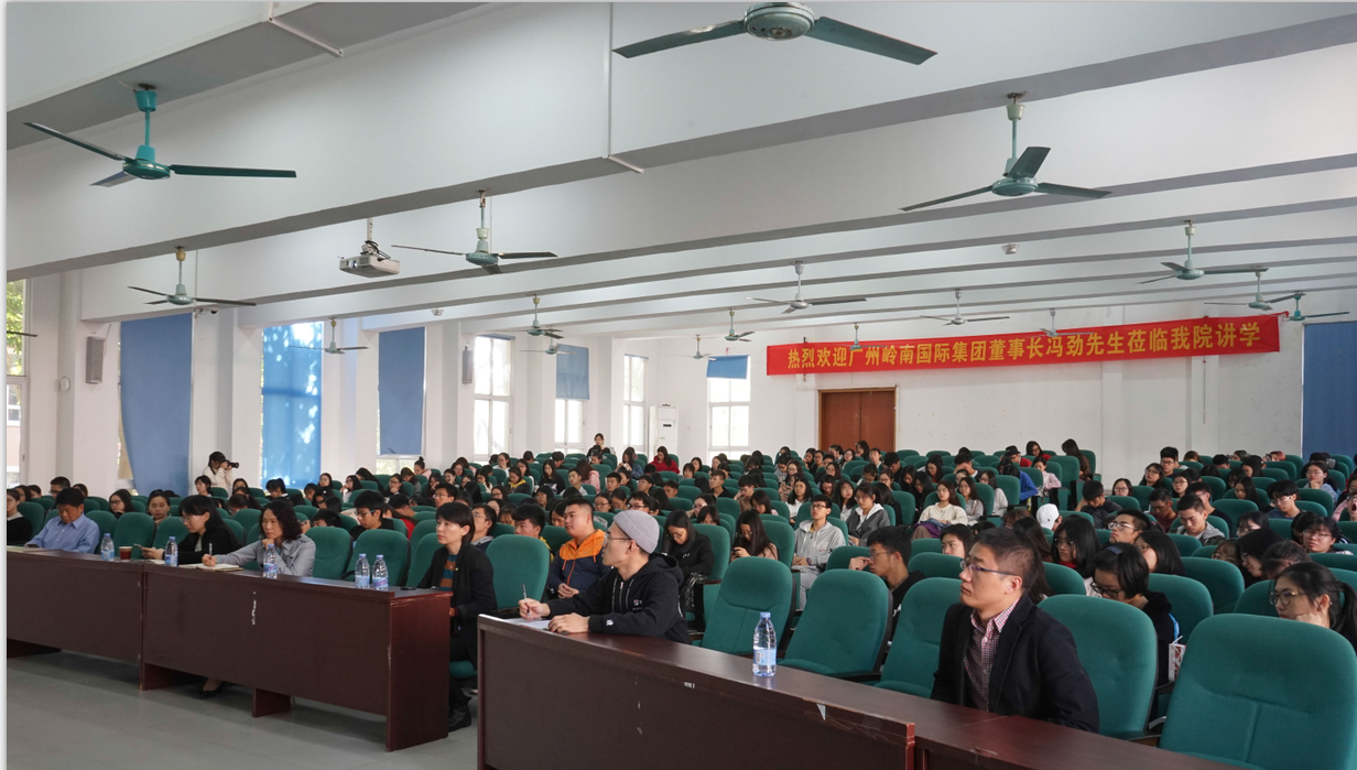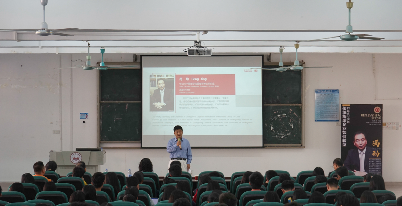11月29日上午,我院《财经名家讲坛》第32讲——“传统旅游企业如何转型的探索与实践”在5教105正式开讲。广州岭南国际企业集团有限公司董事长、党委书记冯劲先生受邀担任主讲嘉宾,太阳成集团tyc7111执行院长卫建国、办公室主任宋得福、学工办主任陈宇桂等师生近300人参加了本次讲座。