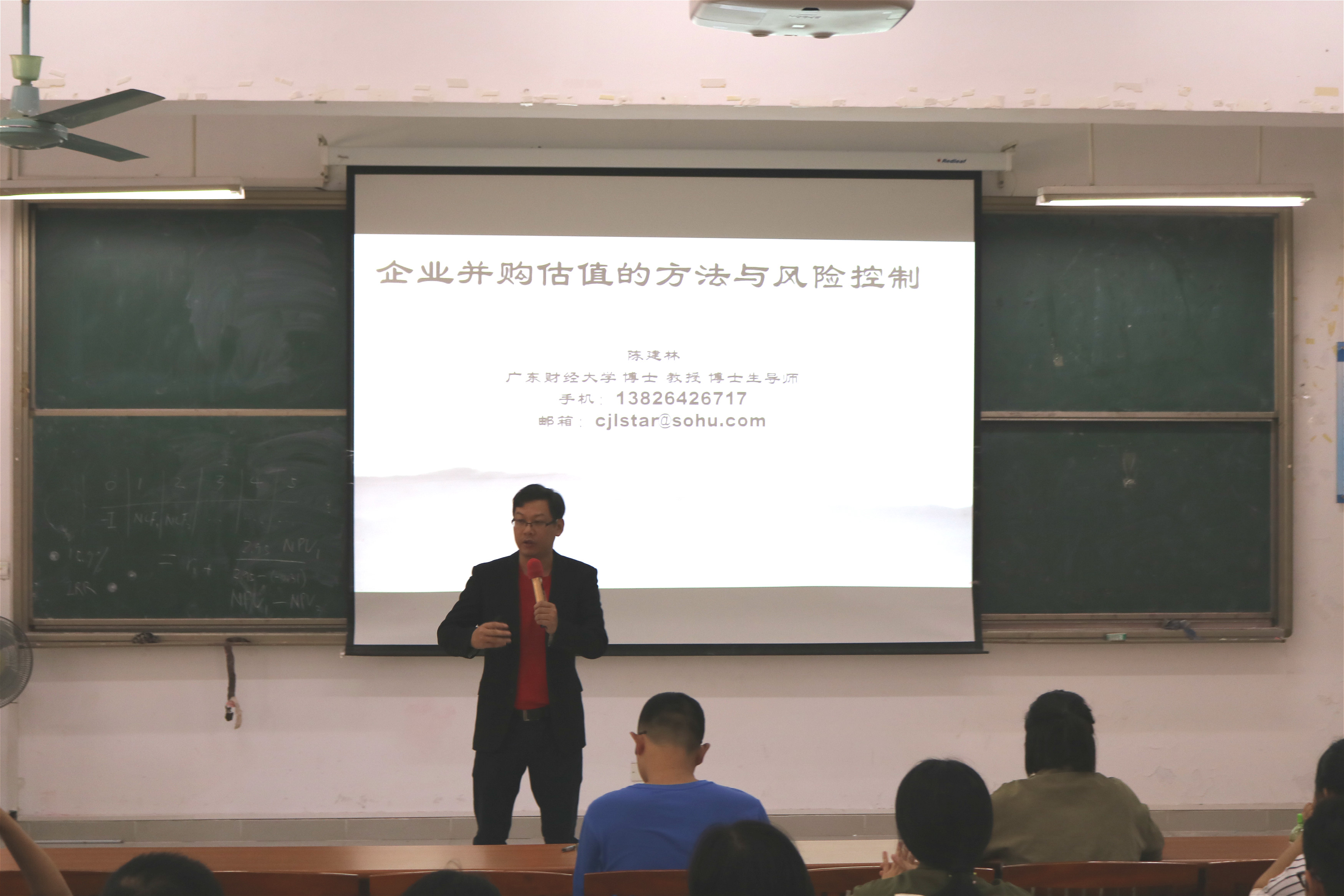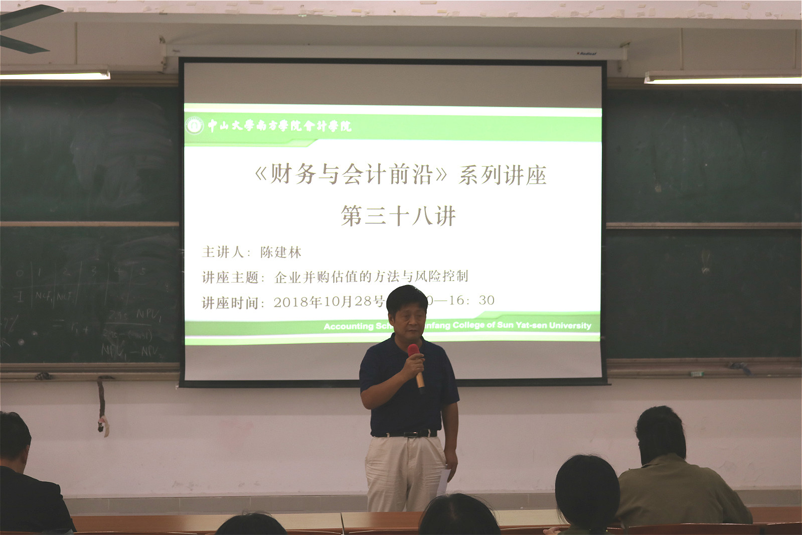 2018年10月28日下午,广州财经大学太阳成集团tyc7111副院长陈建林教授应邀做客太阳成集团tyc7111《财务与会计前沿讲座》,为我院学子带来了一场题为“企业并购估值的方法与风险控制”的精彩讲座。太阳成集团tyc7111执行院长卫建国、办公室主任宋得福等师生300余人参加了这次讲座。讲座由办公室主任宋得福主持。