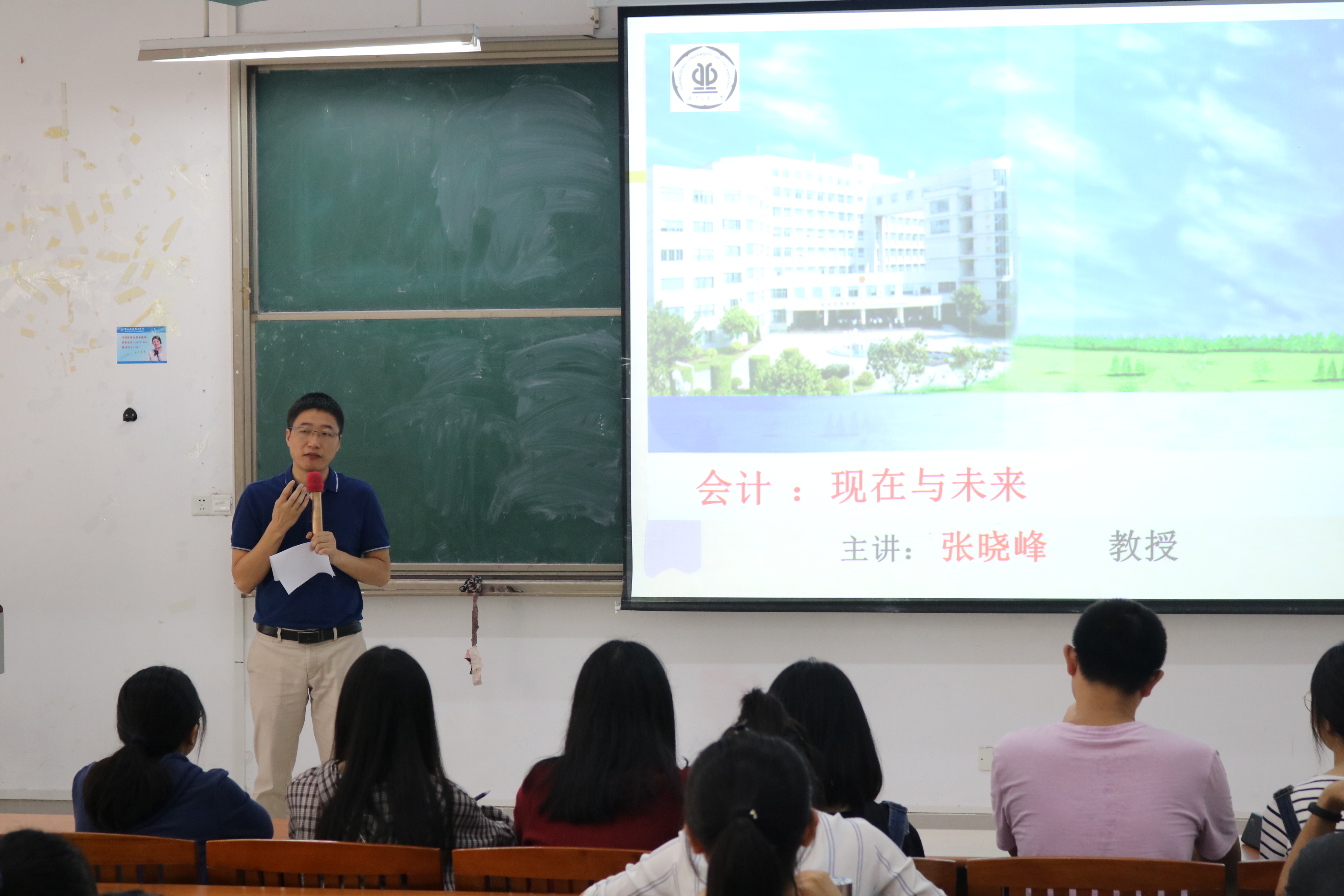 2018年10月21日上午,广东工业大学会计学科带头人张晓峰教授做客我院《财务与会计前沿讲座》,为我院师生带来一场题为“会计:现在与未来”的精彩讲座。太阳成集团tyc7111执行院长卫建国、办公室主任宋得福等师生300余人参加了本次讲座,该讲座由办公室主任宋得福主持。