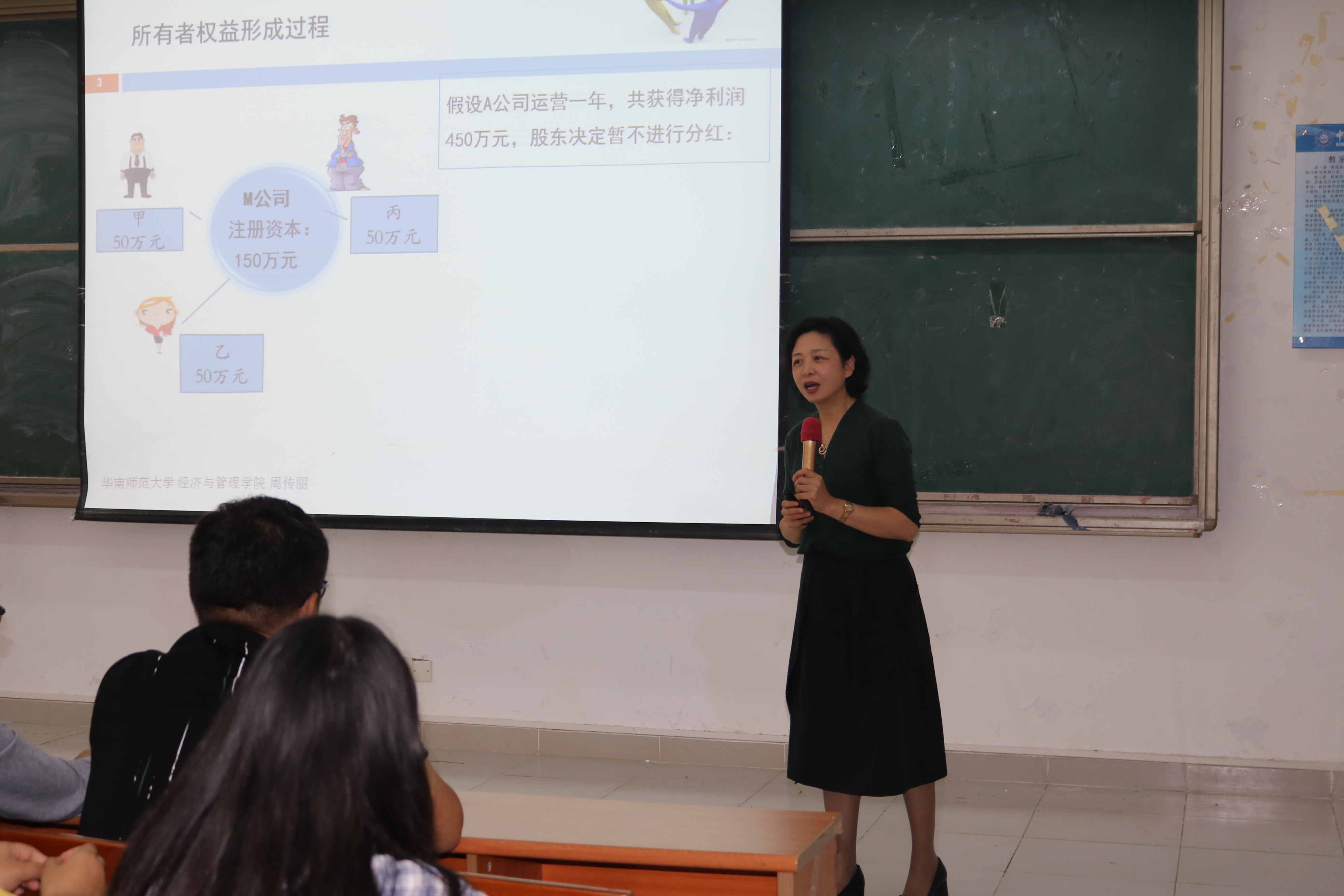 接着,周传丽教授指出,会计可分为Accounting和Finance两部分,她向我们详细地介绍了财务会计与管理会计、财务管理、金融市场运作等。随后,周教授谈及了未来会计行业的发展前景。她表示,现实状况中的低端会计岗位将会被人工智能所取代,而数理统计学专业的学生也可以成为优秀的会计人才,我们财会专业的学生必须要有危机意识。此外,周教授还系统性地将会计大家族进行了分类,她采用树状图的方式极其有条理的使我们了解了中级财务会计、成本会计、高级财务会计、审计学与管理会计的区别,同时使我们深刻地意识到财务管理在企业进行融资管理、投资管理、资金运营以及分配管理等方面的重要性。最后,周传丽教授通过引用现实例子讲述了“所有者权益形成过程”、分享近段时间发生的时事经济热点,引导我们学会用已掌握的专业知识对现实案例进行进一步的思考与分析,学以致用。
