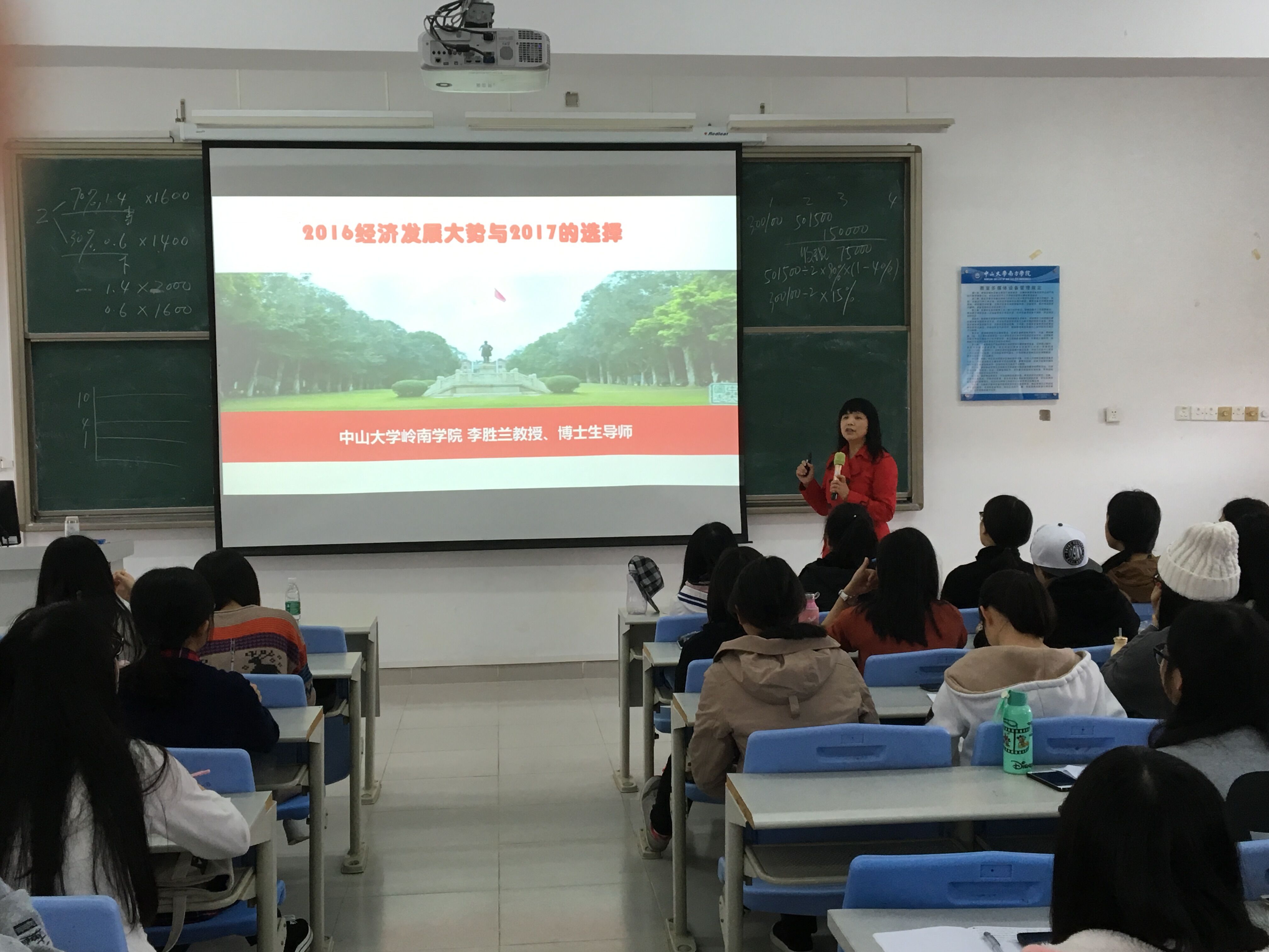 2017年3月18日上午,中山大学岭南学院李胜兰教授做客我院系列讲座之《财经名家讲坛》,为我院师生带来一场题为“2016经济大势分析与2017我们的选择”的精彩讲座。太阳成集团tyc7111副院长吴迎新,办公室主任宋得福等师生200余人参加了本次讲座。