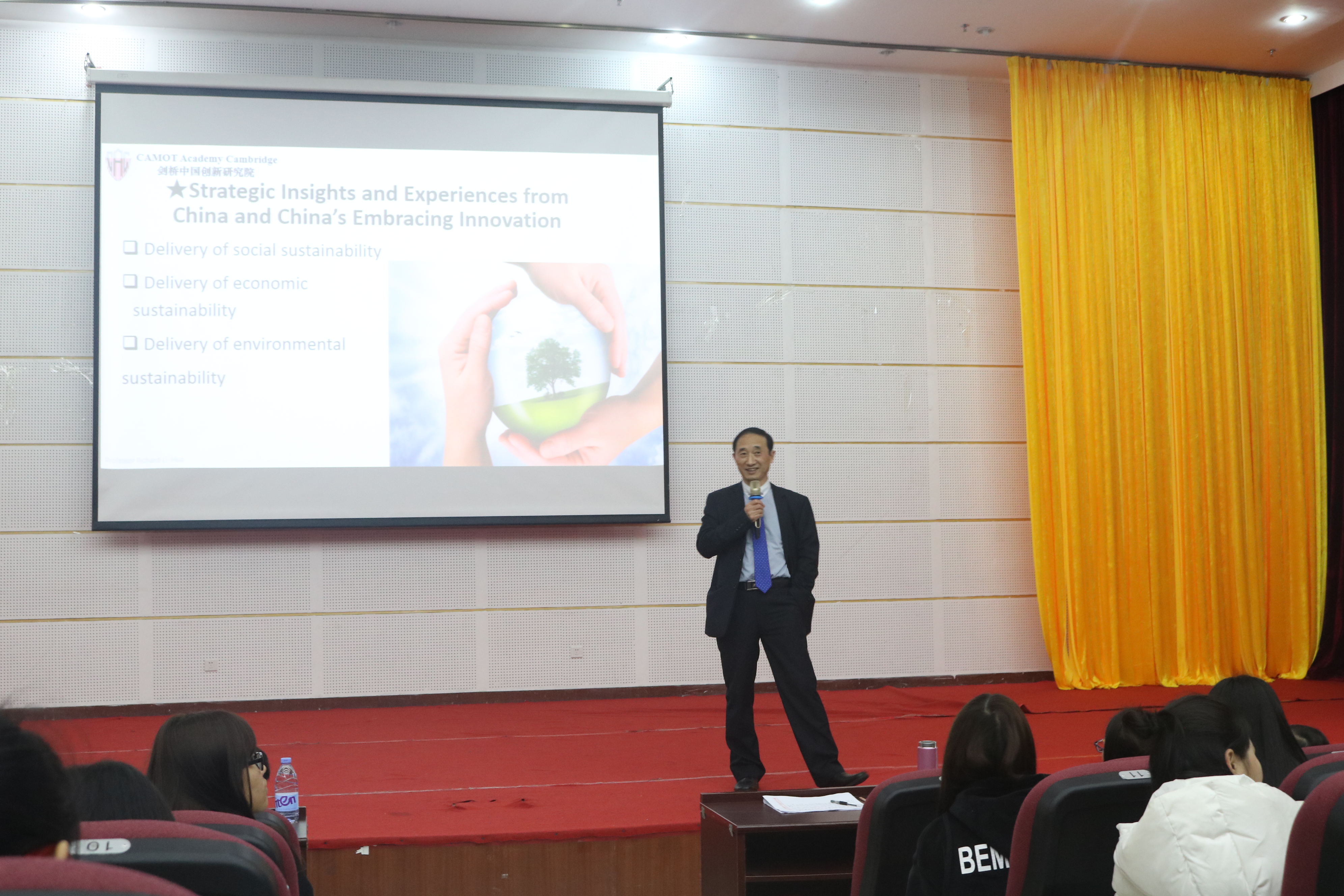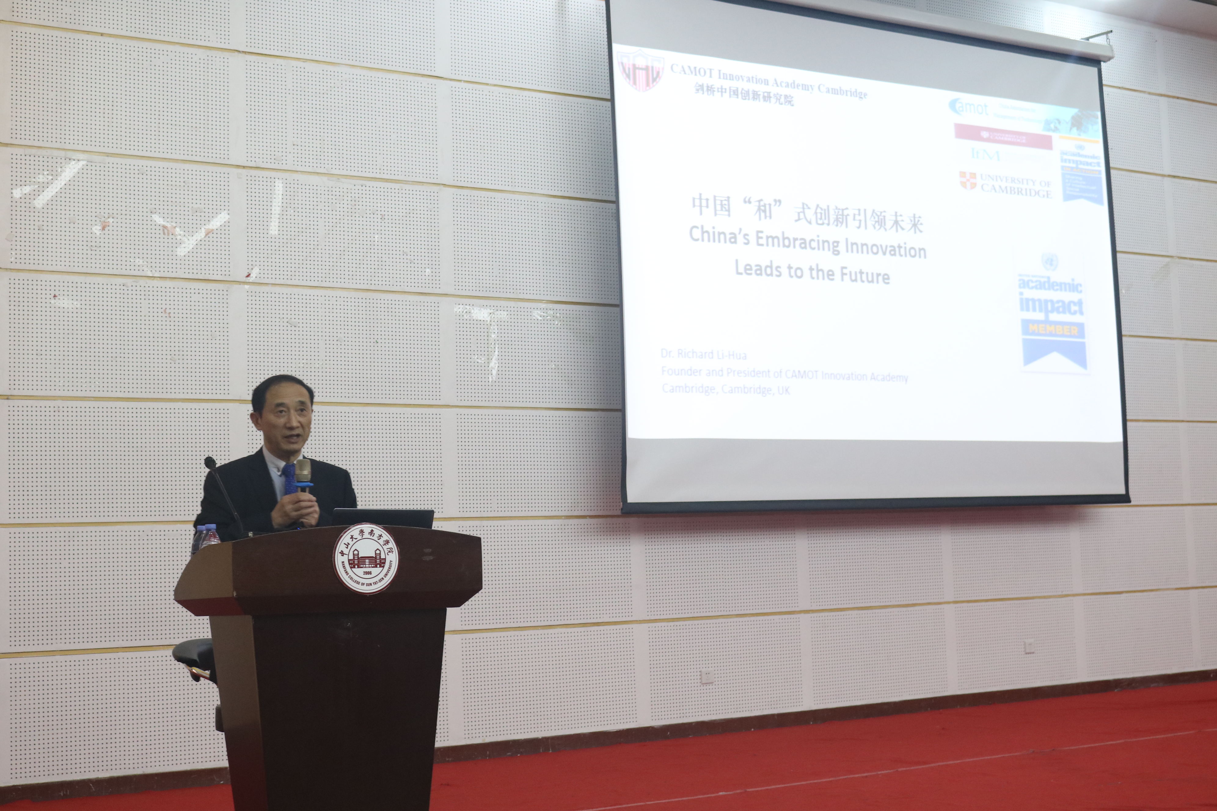 接着,李华教授从自身出发,分享了他近20年的关于“和”式创新的学术研究,并用六个问题引出了本次讲座的主题——中国“和”式创新引领未来。他指出,在如今的大背景和大格局下,东西方面临着不同的挑战,中国想要更进一步的崛起,必须拥抱矛盾、极力创新,即需要“和”式创新。同时,李华教授通过分析张载和亚当·斯密这两人不同的思想理论,提出中国“和”式创新是一种刚柔相济,智者求同的共建、共享、共赢的战略模式,包括拥抱矛盾、与时俱进、求同存异、和谐包容这四个精髓。除此之外,李华教授用东西方管理思想和智慧的融合、计划经济和市场经济的融合、前瞻性与应急性的融合这三大方面来进一步阐释“和”式创新。随后,他表示,发展“和”式创新的现实意义是希望中国在国际上要掌握更多的话语权,提高我们的全球影响力,与世界分享创新机遇,让中国可以用创新模式引领潮流。