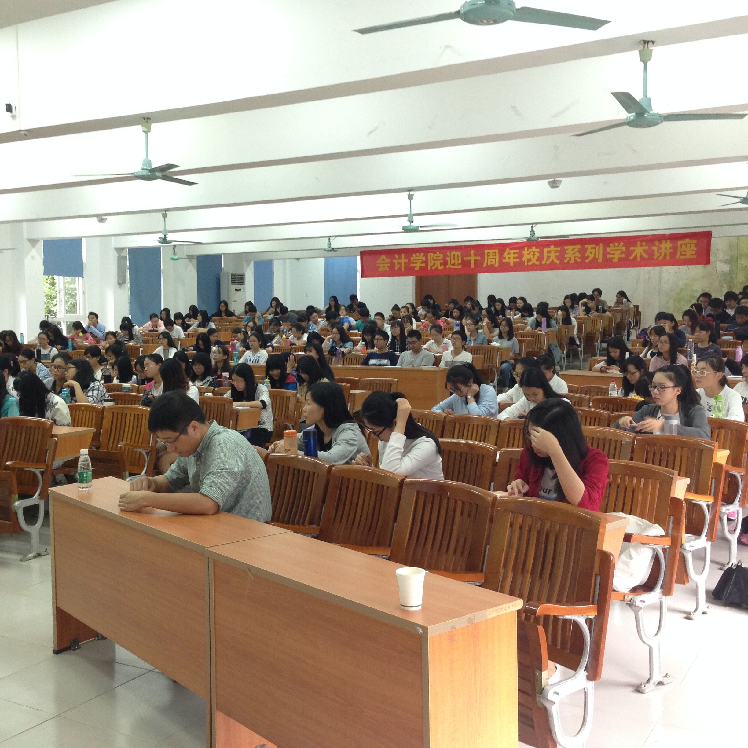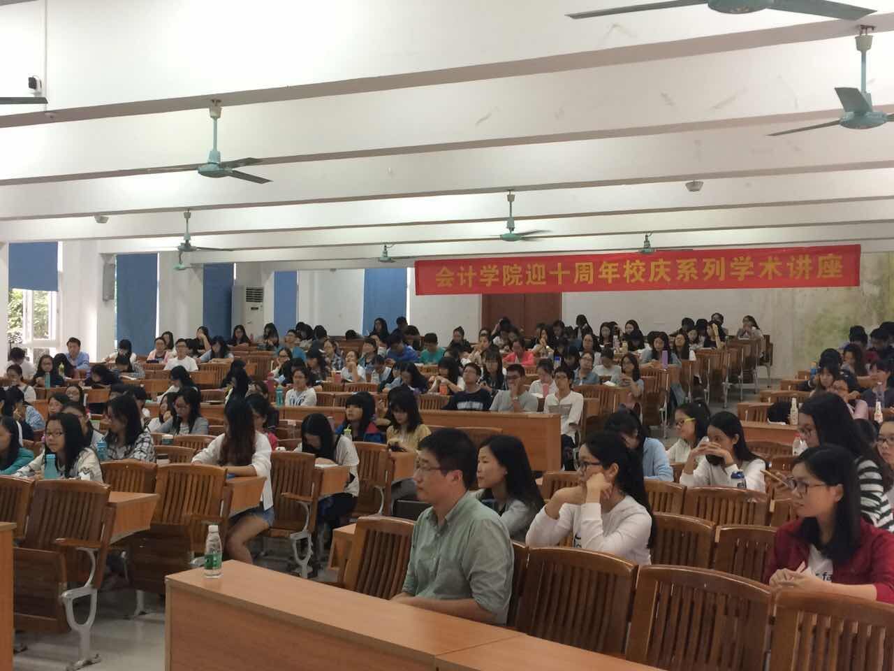 2016年10月19日下午,太阳成集团tyc7111迎十周年校庆系列学术讲座如期举行,广东工业大学会计学科带头人张晓峰教授做客我院系列讲座之《财务与会计前沿讲座》,为我院师生带来一场题为“互联网+会计”的精彩讲座。太阳成集团tyc7111执行院长卫建国、办公室主任宋得福、学工办主任陈宇桂等师生共300人参加了这次讲座。讲座现场 讲座开始前,由卫建国院长为本次讲座致辞,并对张晓峰教授进行了详细的介绍。执行院长卫建国致辞 接着,张晓峰教授通过引用与“互联网+”有关的三个问题,阐释了“互联网+”与会计之间的联系。一是互联网对会计的影响,张晓峰教授向我们展示了三十年来会计的五次重大变革以及互联网+的六大特征,他指出,在智能拓展、核算技术、组织形式、服务模式等方面,互联网+推动着会计行业的深刻变革与跨越式发展。二是“互联网+”时代财务人的职场未来。张晓峰教授运用了美国零售业巨头沃尔玛计划用现金循环机代替部分财务工作和中兴通讯将会计和IT相结合的例子,讲述了“互联网+”将会对企业内部经营管理和外部生存发展产生重大变革,引发了我们对职业未来的思考。三是会计人员在面对 “互联网+”给会计改革与发展带来的新功能时,会计行业需要在会计管理层面、企业层面、会计师事务所层面、会计人员方面做好准备,以应对“互联网+会计”时代的新挑战。张晓峰教授授课 随后,张晓峰教授还对广东工业大学会计学系的硕士研究生招生简章进行了具体介绍,极大地鼓舞了我院学子考研的斗志。讲座现场 最后,讲座在一片热烈的掌声中落下帷幕。