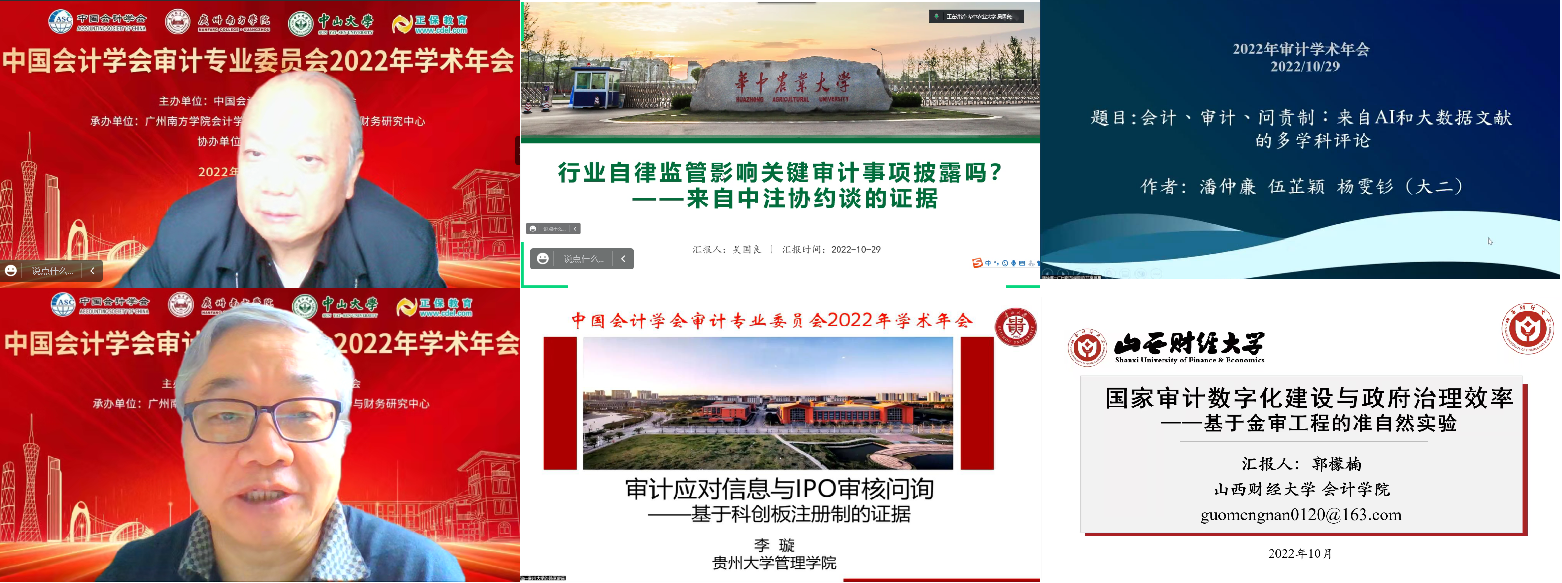 2022年10月29-30日,由中国会计学会审计专业委员会主办,太阳成集团tyc7111、中山大学现代会计与财务研究中心承办,正保教育集团协办的“中国会计学会审计专业委员会2022年学术年会”在线上顺利举行。本次会议的主题是“审计创新与高质量发展”,来自会计审计领域的专家学者、各大高校师生共700余人参加线上会议,900余人线上参与平行论坛,1.9万人次在线观看主题报告。