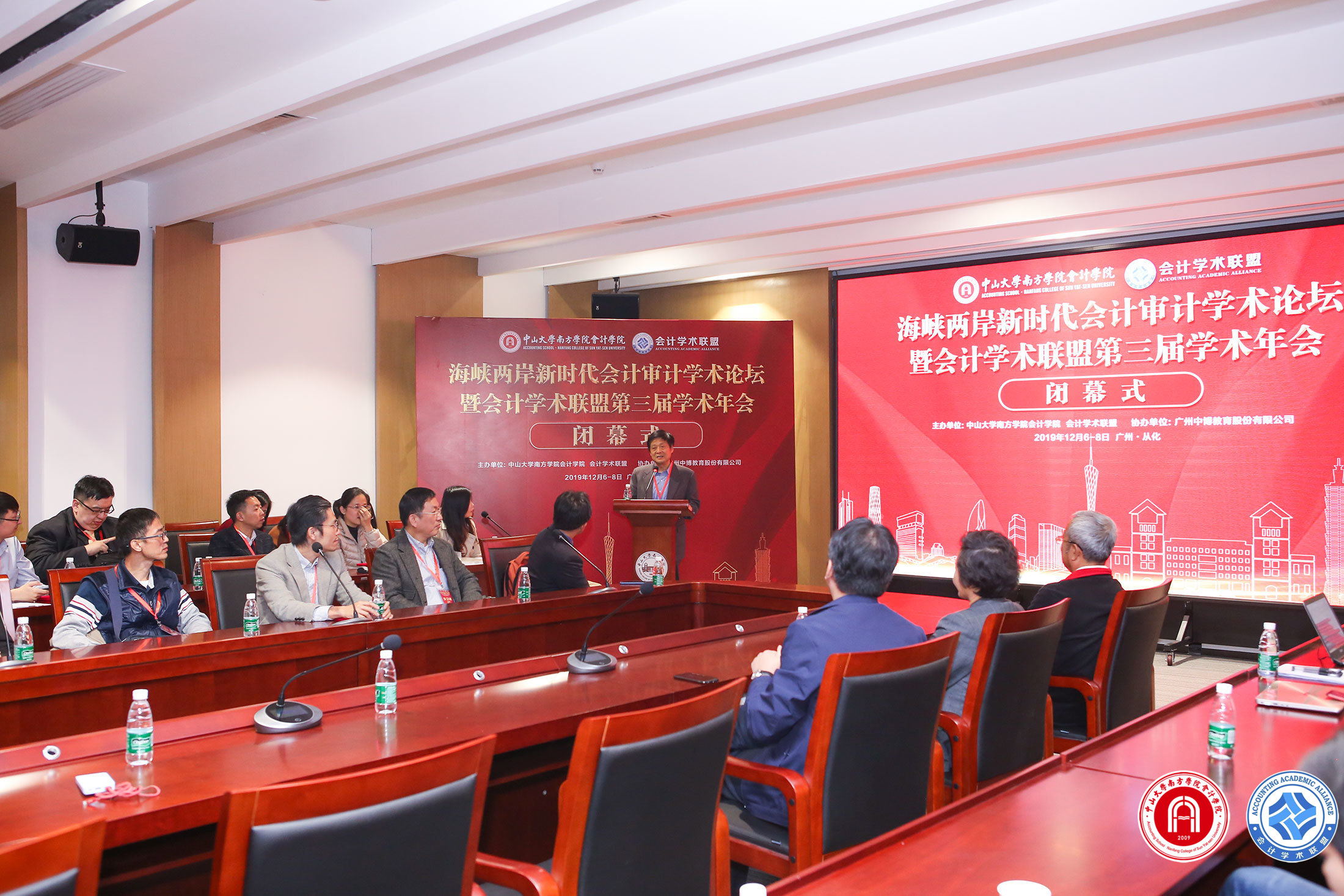 中山大学南方学院太阳成集团tyc7111执行院长卫建国老师在闭幕室上讲话,卫院长对全体参会代表以及对会议提供服务和支持的所有单位和个人表示感谢,对本次大会取得的丰硕学术成果表示祝贺。他指出,2020年7月,中山大学南方学院太阳成集团tyc7111将承办中国会计学会2020年学术年会,届时会有国内外600余名财会领域专家学者齐聚广州从化,共商财会行业发展趋势、共享财会领域学术经验、共建新时代财会发展新路径,他代表中山大学南方学院太阳成集团tyc7111对现场的专家、学者的再次到来发出盛情邀请。最后,卫建国院长宣布本次大会圆满结束!