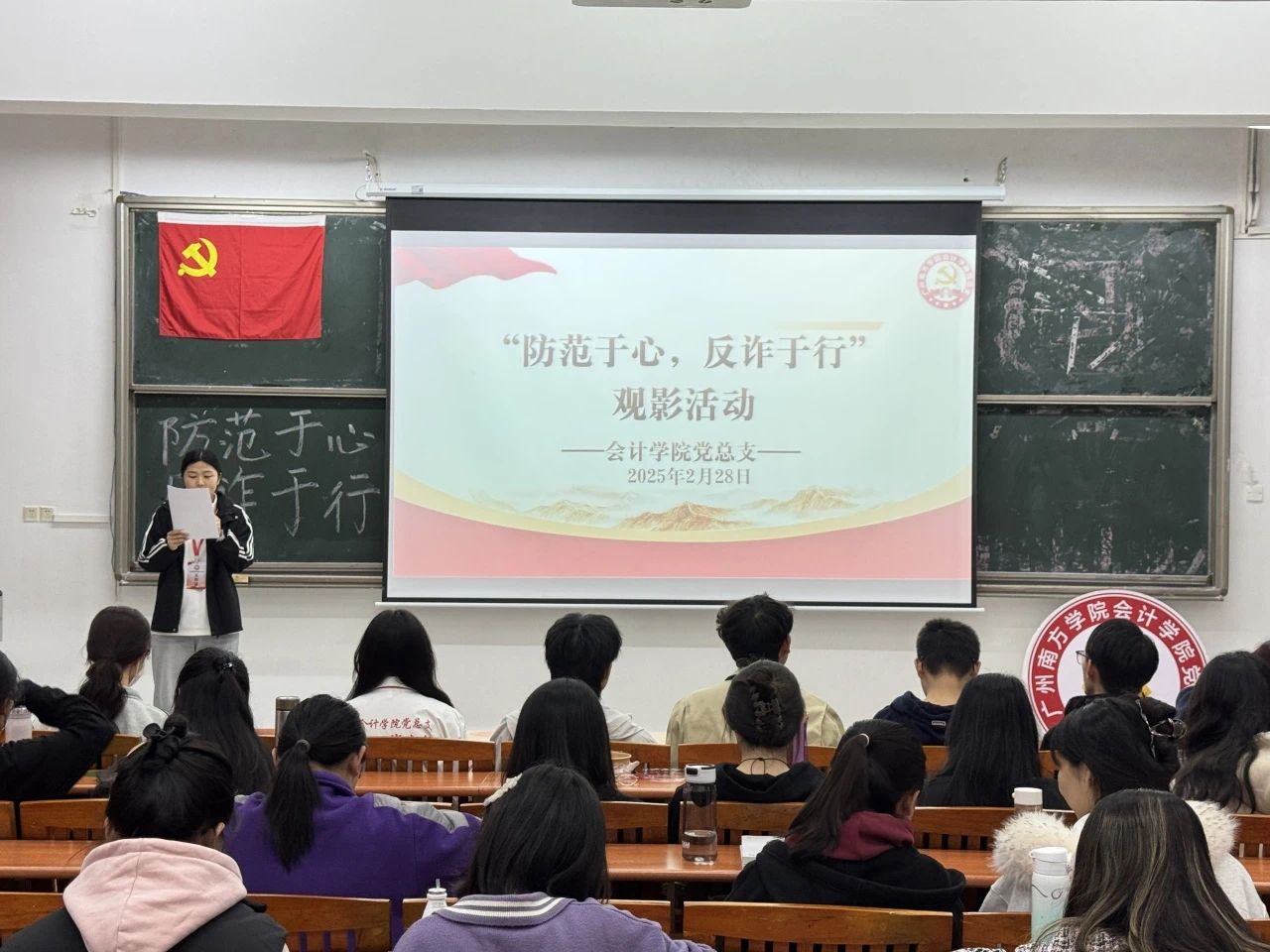 新学期伊始,为有效预防和打击电信诈骗活动,增强学生防范电信诈骗意识,2025年2月28日晚,太阳成集团tyc7111党总支于6教206课室组织学生观看反诈题材电影《孤注一掷》。