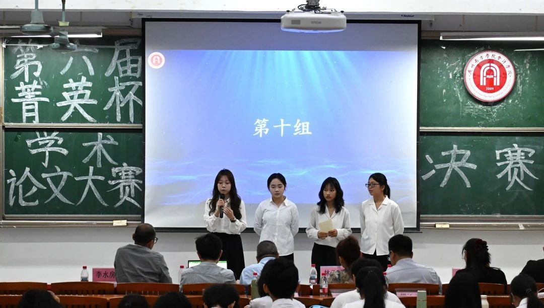 在主持人介绍比赛规则和注意事项后,参赛小组正式上台展示。此次大赛共有十二个小组入围决赛,论文研究内容涵盖ESG治理、企业数字化的内部控制机制、数字媒体技术、人工智能等多个领域。各小组准备充分,在展示环节发挥出色,呈现出一个个学术思想交锋的精彩场面。
