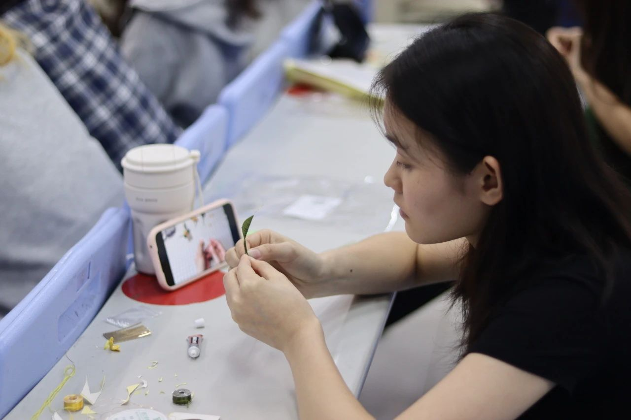 DIY手工制作和非遗文化结合,让中华文化得以延续。注重传统文化的传承和弘扬的同时,还注重在传承的基础上进行创新。在课堂上,小老师们引导同学们深入挖掘传统文化的精髓,并将其与现代审美相结合,创造出既具有传统文化韵味又符合现代审美需求的作品。提升同学们的动手能力以及创新能力,让更多的大学生充分重视并喜爱中国的传统文化,让缠花这种艺术形式绽放出新的风采,让非遗传承“出彩”又“出圈”。‍