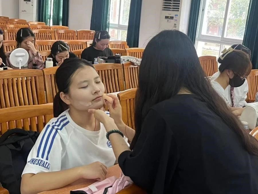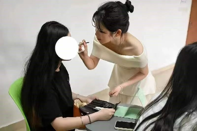 不仅如此,我们给学员们提供了亲身体验现场化妆的机会。通过现场化妆,她们可以将学到的知识付诸实践,从而更加深入地理解化妆过程中的诸多细节和技巧。在小老师的指导下,学员们可以有效避开常见的化妆误区和错误手法,并且学会根据自身特点展现最佳的个人形象。