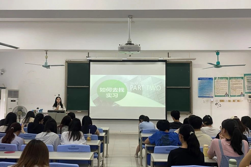 为了进一步加强我院2022级学生对专业实习相关问题的认知,帮助学生明晰未来的职业规划。我院6月5日下午在5教201成功举办了专业实习经验分享会。2022级辅导员陈静菲老师、2021级的黄展洋、陈欢婷、伍梦蝶和葛倚轩以及全体2022级学生参加了分享会。