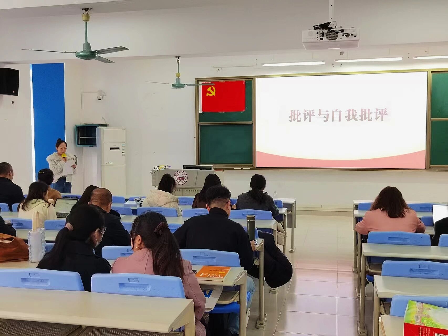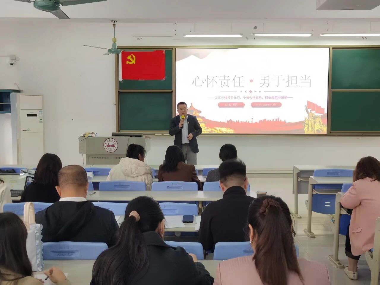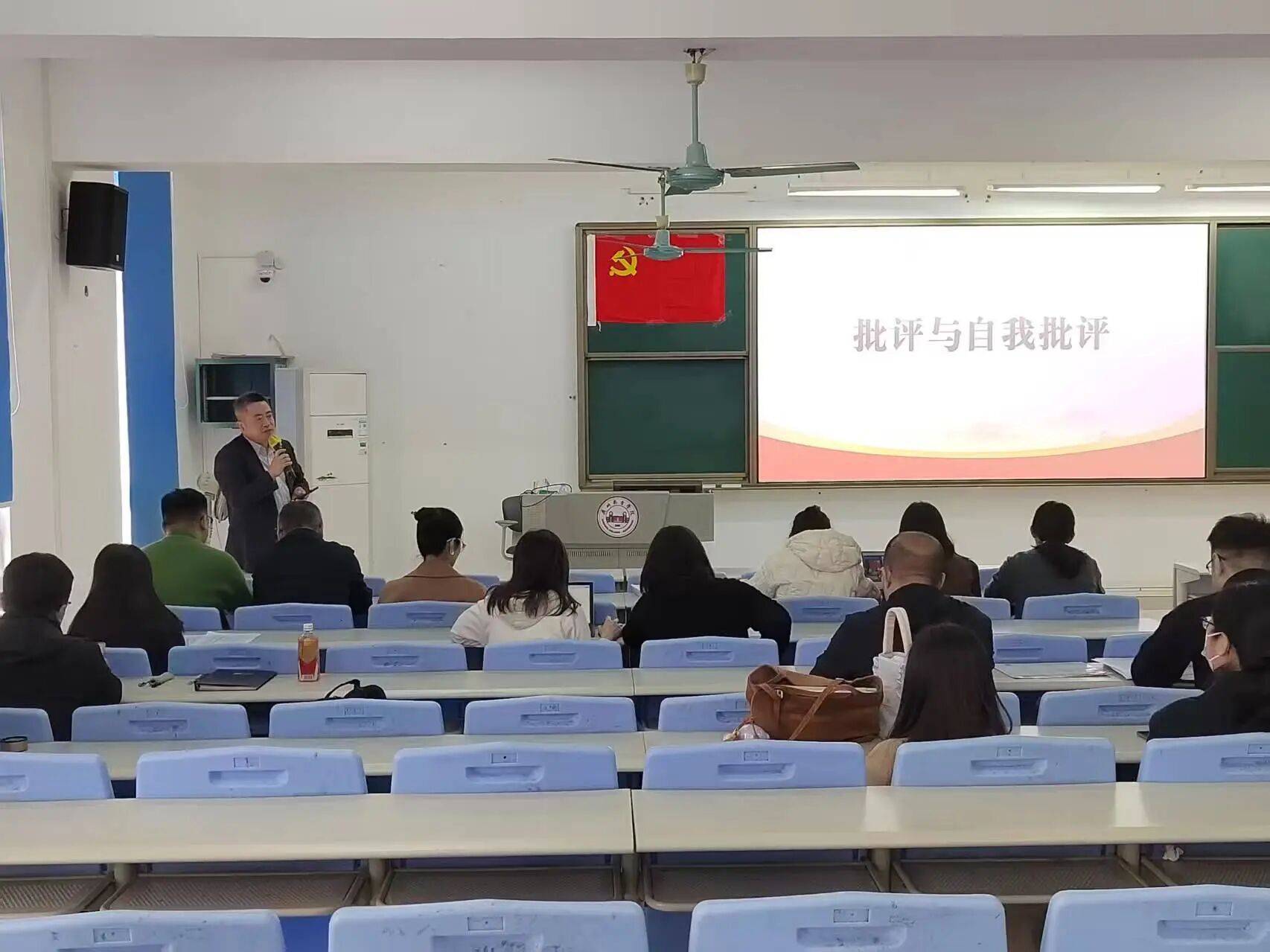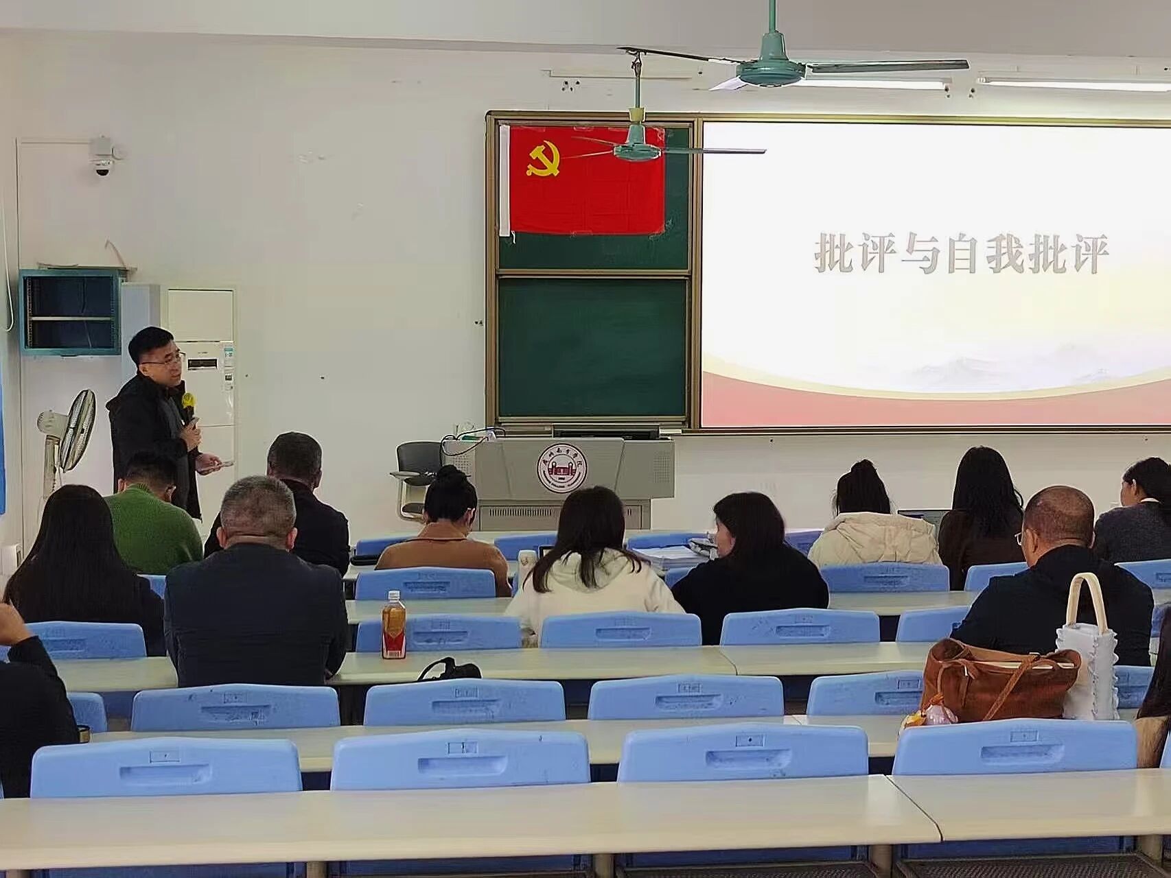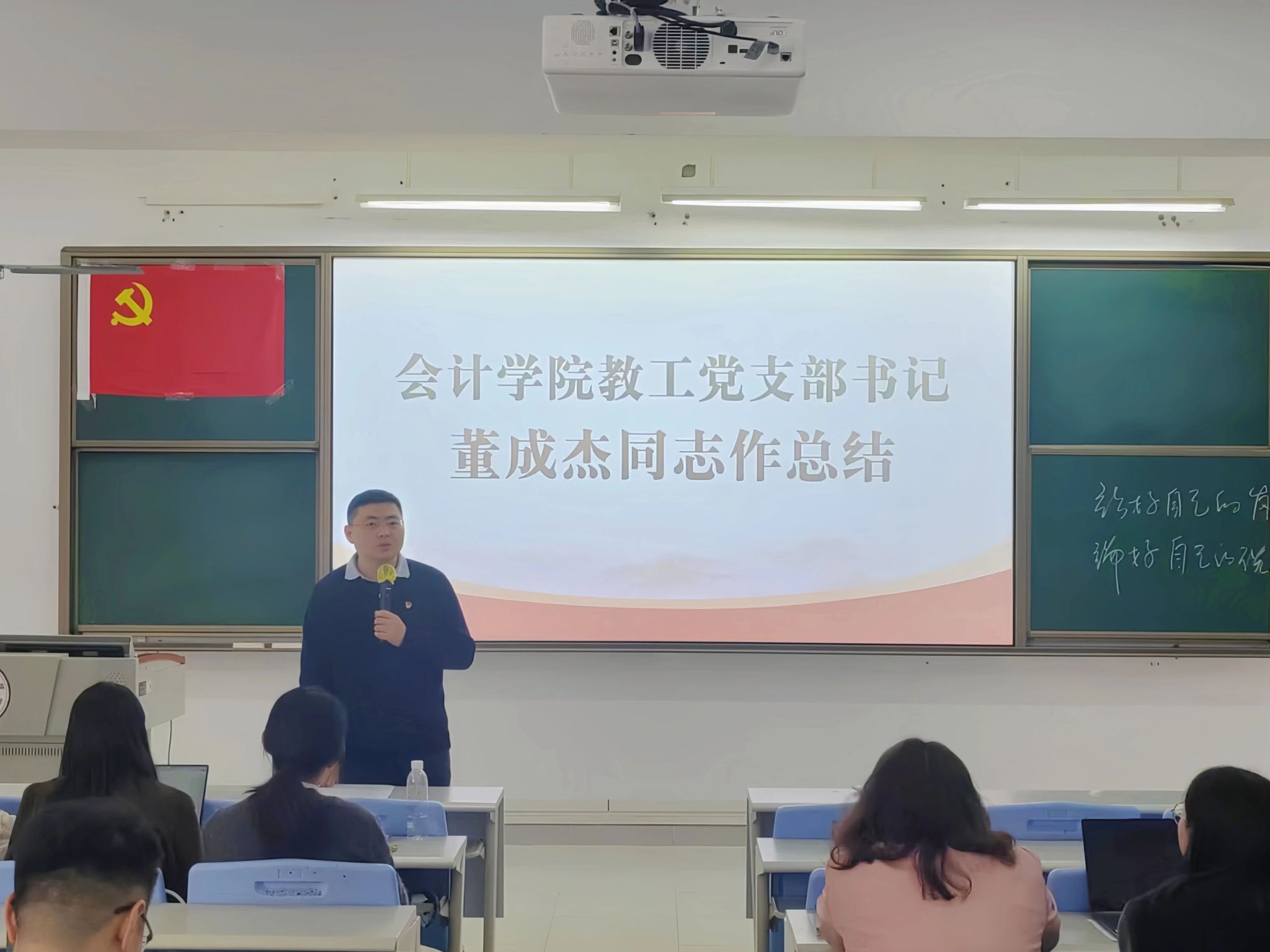 会议伊始,周洪同志为全体党员讲授专题党课。本次党课聚焦党的创新理论学习,对标新时代高校党建工作要求,紧密结合学院教学、师德师风建设和立德树人工作,对理论核心内容、实践落实路径以及党员责任使命进行了细致讲解。全体党员认真听讲、用心领会,进一步提升了政治站位、强化了理论素养,也更加明晰了自身的育人职责与使命担当。