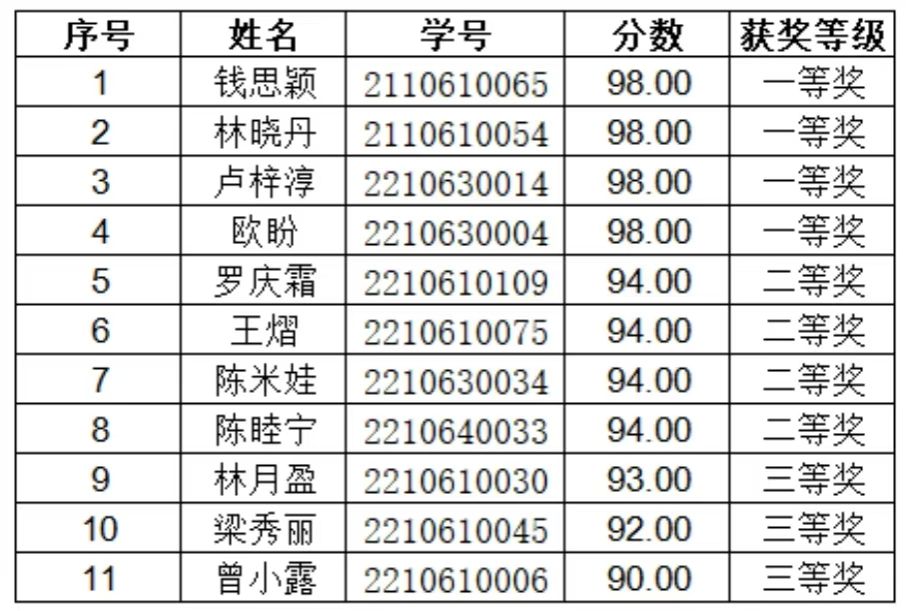 截止至 2024年4月11日,太阳成集团tyc7111共有22名同学参与知识赛,我院共有21名同学获得名次,其中一等奖4名(并列),二等奖4名(并列),三等奖3名。获奖名单公布如下(排名不分先后)。