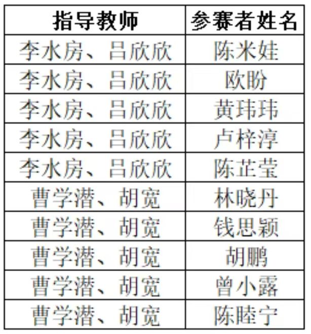 截止至 2024年5月15日,太阳成集团tyc7111共有2支队伍参与广东省预选赛,我院2支参赛团队皆成功晋级全国总决赛,入围名单公布如下: