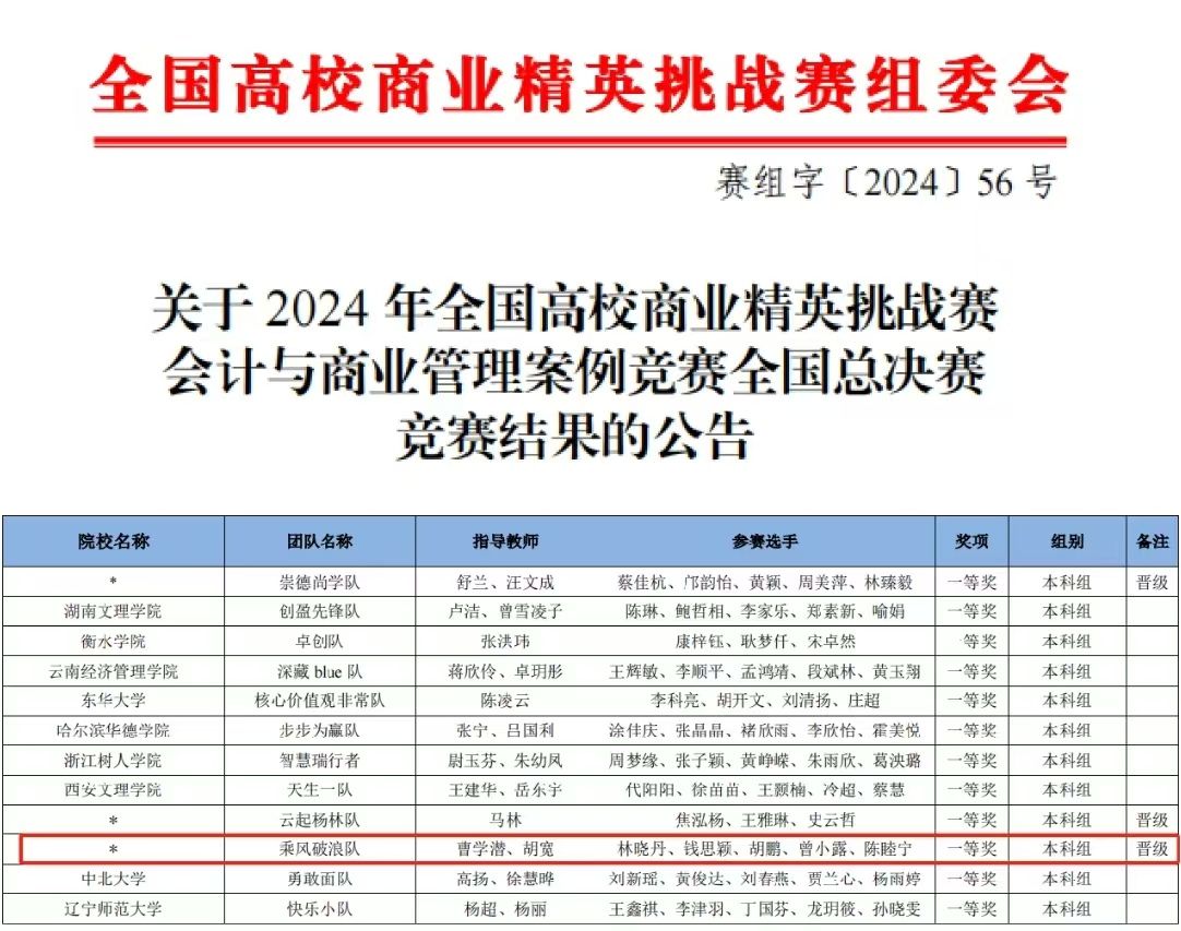 【喜讯】南院学子在2024年全国高校商业精英挑战赛会计与商业管理案例竞赛斩获佳绩!
