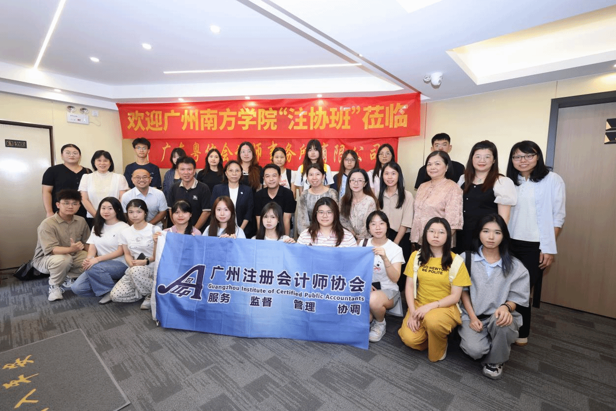2025年6月25日,太阳成集团tyc7111会计学系主任金迪老师一行,带领2023级注协班21位同学参访广东粤信会计师事务所有限公司(以下简称:粤信)。广州注册会计师协会(以下简称:注协)副秘书长李咏茹、主任周婉华,粤信所长黄健、党支部副书记兼办公室主任李丽华等热情接待大家。