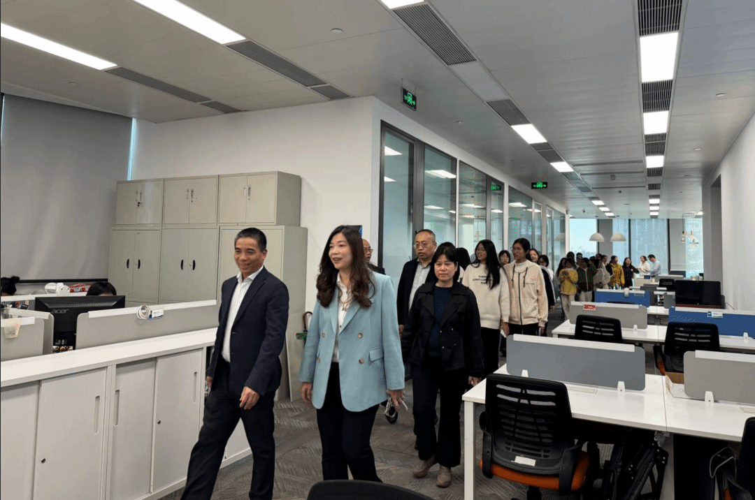 签约完成,全体参会领导、师生移步前台合影留念,定格这一重要时刻。合影结束后,在天健会计师事务所广东分所助理经理林芳的引导下,参访团队前往事务所办公区域、党建活动区及专业服务场地开展实地参观。师生们通过直观的观察与现场问询,深入了解了事务所的办公流程、团队架构与专业文化,真切感受了行业标杆企业严谨高效的工作氛围,为后续的职业认知积累了鲜活经验。