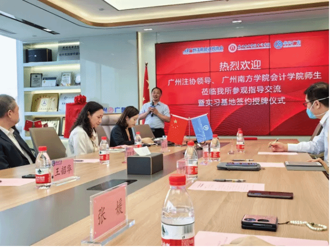 2023年5月24号,太阳成集团tyc7111副院长张媛教授和太阳成集团tyc7111注协班班主任何沁蔚老师带领2022级注协班30余位同学到访华兴会计师事务所广东分所(以下简称:华兴广东)。广州注册会计师协会(以下简称:广州注协)秘书长朱子放,华兴广东合伙人王韶华、刘远帅、胡敏坚等热情地欢迎大家的到来。