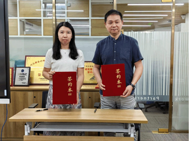 在签约与授牌仪式,金迪老师与谈东和所长分别代表各自单位签署了合作协议,并授予广东金铭会计师事务所“tyc7111cc太阳成实习基地”牌匾。