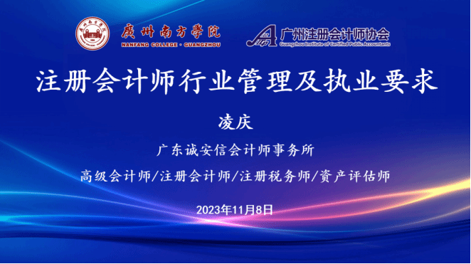 11月8日下午,2022级注协班在5教103开展特色主题课程:《注册会计师行业管理及执业要求》。邀请到注协班特聘教师——诚安信会计师事务所注册会计师凌庆老师,为同学们分享注册会计师行业管理及执业要求相关内容。