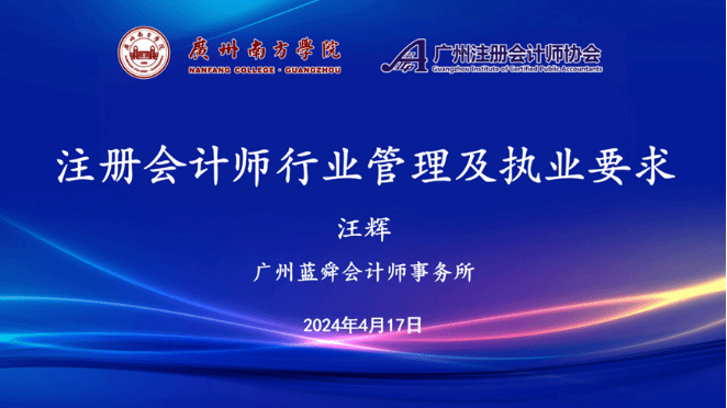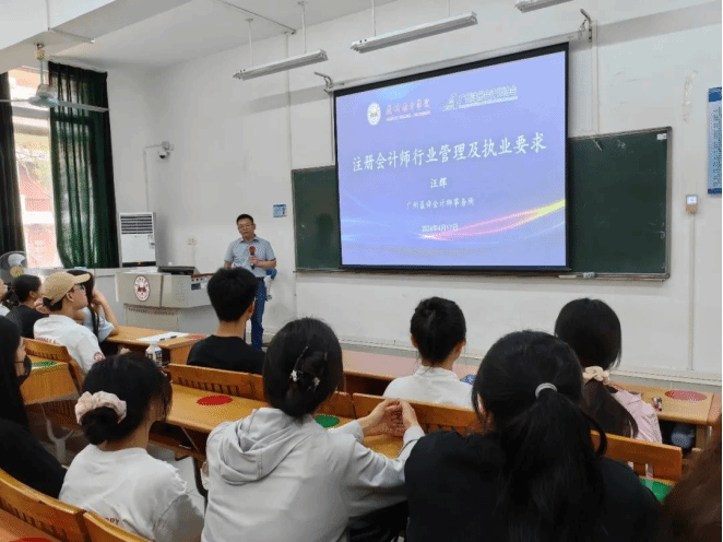 4月17日下午,2023级注协班同学在6教205开展新学期第一次特色主题课程:《注册会计师行业管理及执业要求》。此次课程邀请到注协班特聘教师——广州蓝舜会计师事务所注册会计师汪辉老师,为同学们讲解注册会计师行业管理及执业要求相关内容。