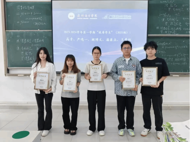 会议伊始,注协班班主任何沁蔚老师对本学期2021级的优秀学生进行表彰,并颁发奖状进行合影留念,同时鼓励大家向优秀学生看齐,共同学习进步。