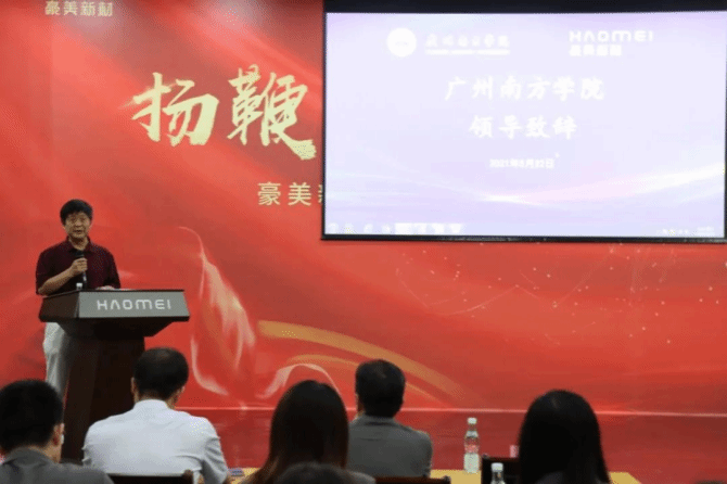 活动伊始,豪美新材刘总代表豪美新材致辞。他对太阳成集团tyc7111领导和学生的到来表示热烈欢迎。他指出,豪美新材是一家集专业研发、制造、销售于一体的国内大型的铝型材制造商,在生产质量、研发创新等方面始终走在全国前列,公司于2020年正式上市,拥有广阔的发展前景。此次与太阳成集团tyc7111的合作,是根据目前行业的发展形势做出的新尝试。豪美新材十分重视与太阳成集团tyc7111的合作。同时他也寄语实务导师们勤勉尽责,鼓励学生与老师间保持互动交流,促进豪美班的建设取得令人满意的成效,为双方进一步的合作打下良好的基础。