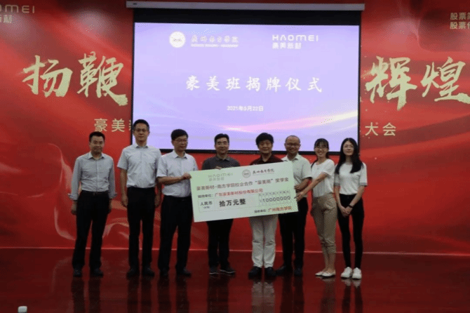 同时,豪美新材出资设立奖学金10万元用于激励“豪美班”学生努力学习,成为高素质的应用型优秀人才。