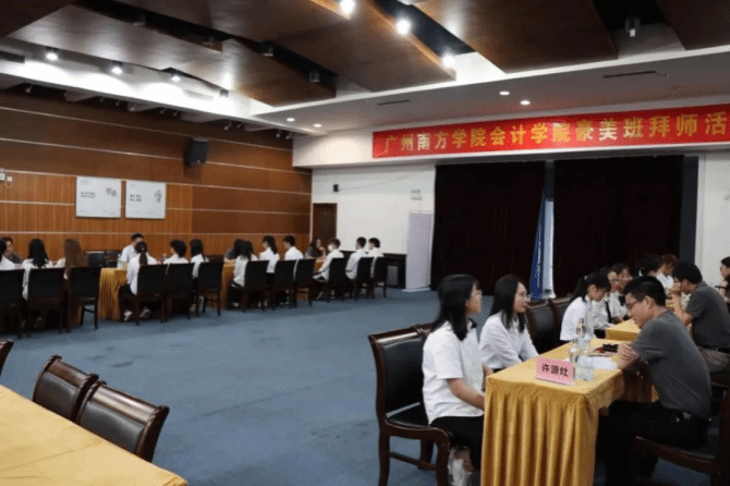 最后,学生与导师在现场完成“拜师”仪式。各实务导师和与会学生进行了分组交流,就会计专业的发展前景、职业趋势、职业规划等问题进行了深入的交流与探讨。