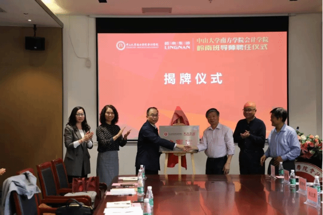 接着举行岭南班揭牌仪式,学校党委书记李建超和岭南集团党委书记、董事长冯劲代表双方进行了揭牌。