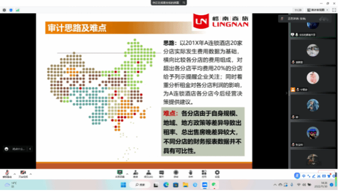 讲座伊始,朱标导师首先以某连锁酒店的运营审计项目为例,讲述了项目背景、审计重点、审计思路及难点等方面的内容,强调要聚焦数据分析企业运营结构,对数据进行清洗、分类,并建立数据之间的链接。结合实际审计方法,最终总结出该项目的审计价。