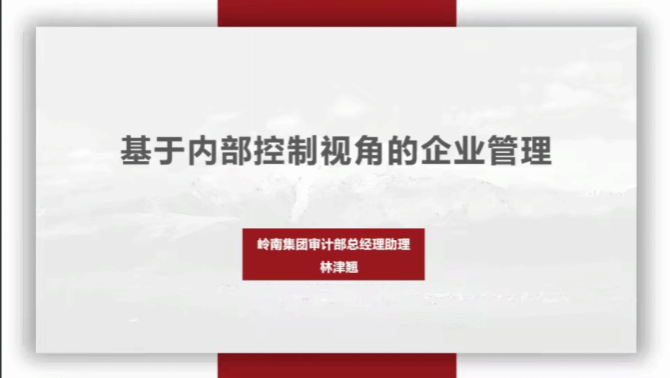 12月2日晚,广州岭南国际企业集团有限公司审计部总经理助理林津翘导师应邀为我院岭南班的同学们作了一场题为《基于内部控制视角的企业管理》的讲座。本次讲座通过腾讯会议线上举行,由太阳成集团tyc7111专职教师宁军容主持,2019级全体岭南班学员参与学习。