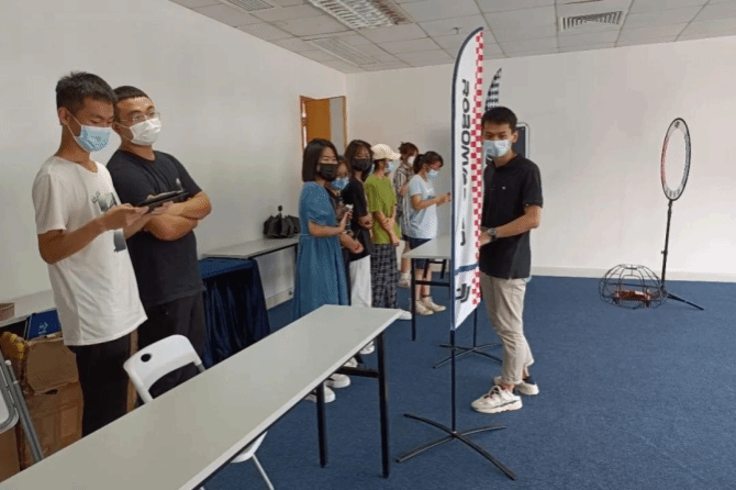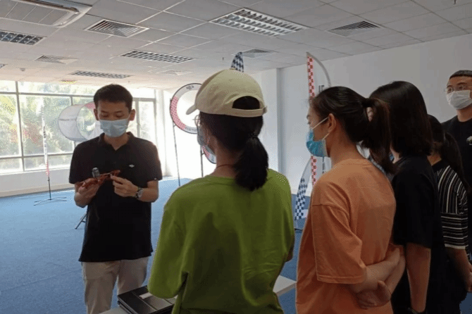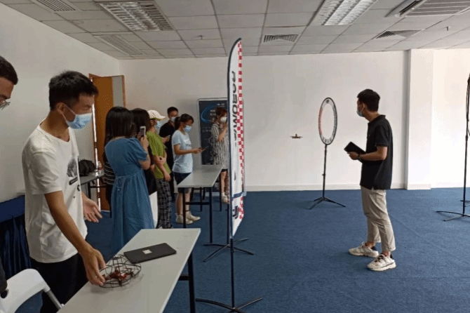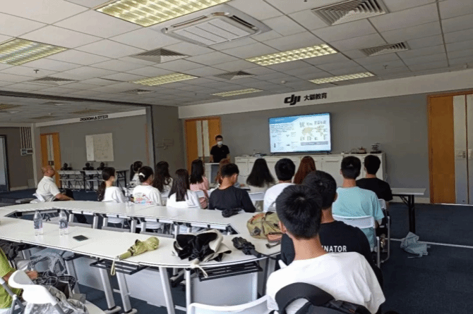 紧接着,同学们来到迎宾楼二楼,参加了大疆无人机体验课。在课程的理论讲解环节,大疆教育的导师为同学们讲解无人机的应用、原理、组件、构成以及操作要领,并通过一系列宣传片让同学们了解到了机甲大赛、无人机挑战赛等创意类比赛,极大地开拓了同学们的视野。随后,在课程的实践环节,老师耐心地教同学们如何上手操作无人机模型,同学们亲自操控无人机,课程有趣而充满了挑战性。