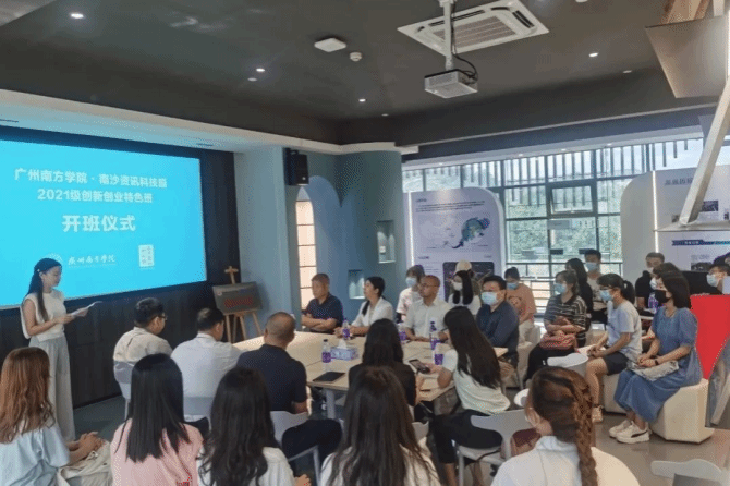 2022年5月25日下午,tyc7111cc太阳成与广州南沙资讯科技园合办的“南沙班”开班仪式在广州南沙资讯科技园软件楼路演厅成功举行。广州南沙资讯科技园总经理王瑞章、孵化器运营部商务经理黄靖靖、商业与服务部总监谢伟生、研学项目高级经理董晓明;太阳成集团tyc7111执行院长卫建国、学工办主任陈宇桂、会计系主任金迪、专职教师张荣祥、苏梦蓝以及辅导员申雨弦出席了本次活动。此外,2021级南沙班全体同学参加了本次活动。仪式由黄靖靖经理主持。
