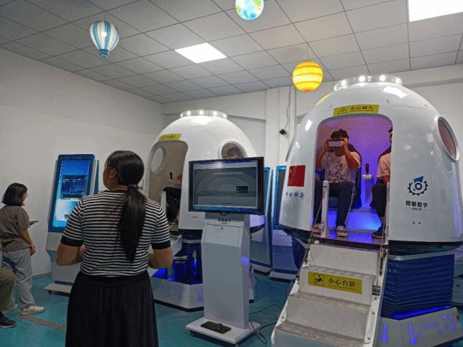邓经理与曾经理首先对我院师生的到来表示热烈的欢迎,并带领同学们体验了深圳市精敏数字机器有限公司研发生产的银河幻影VR设备——梦回神舟德令哈外星人项目,让同学们宛若身临其境,沉浸式感受VR设备带来的奇妙旅程。