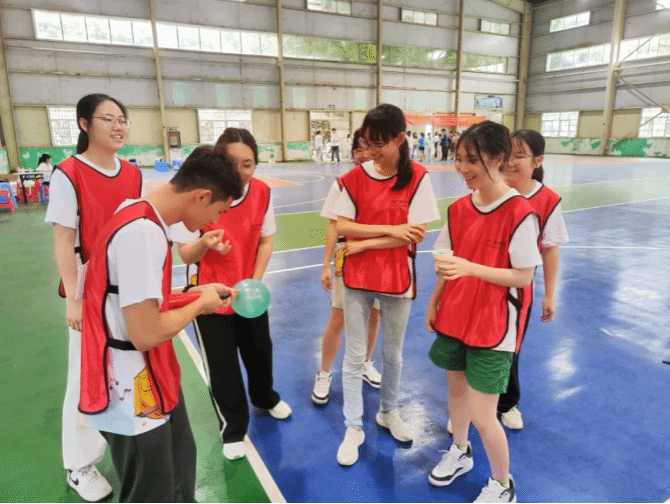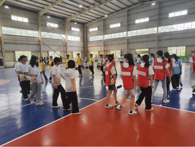 班会结束后,21级、22级“正保班”全体同学在西区篮球馆进行素质拓展活动。活动在自由分组中拉开序幕,全体同学共分为4组,自行设计队名。在简单介绍完活动规则后,分别进行了“万花筒”“默契运球”“歌名猜猜猜”等活动项目,同学们在热烈的活动氛围中相互激励与合作,促进了彼此的沟通和交流。