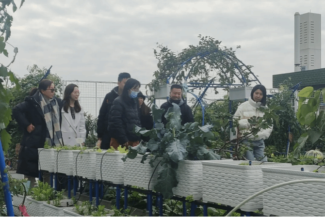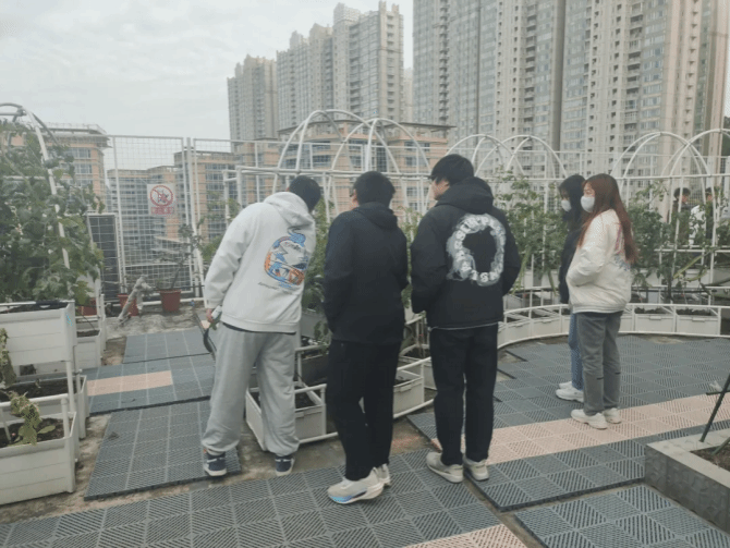 最后,首席运营官陈韵女士带领同学们参观了总部基地的“天空农场”,在这里同学们不仅学习到了都市农业独特的运营模式,而且还零距离亲近都市田园风光。