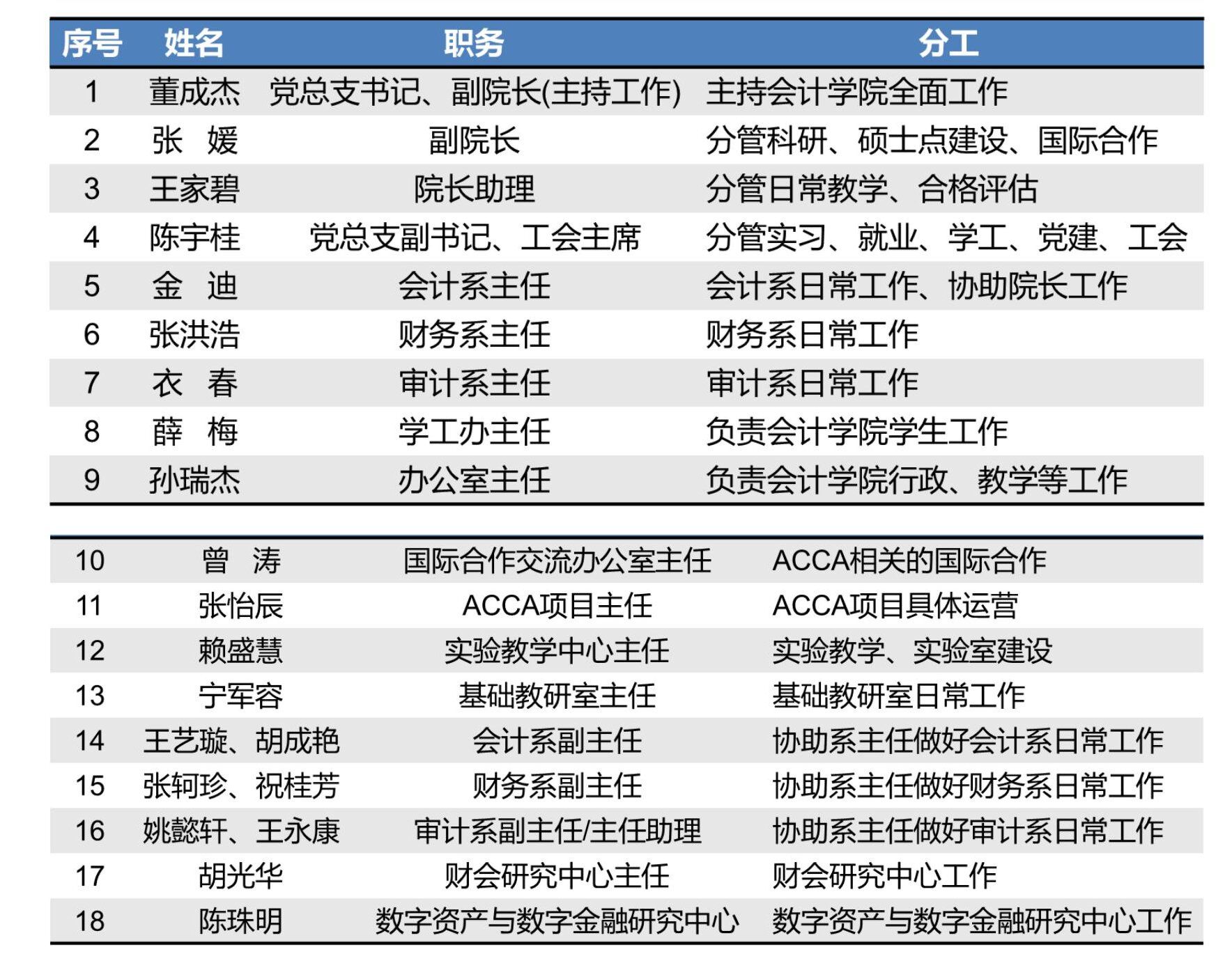为进一步明确工作职责,优化管理服务效能,确保学院各项工作高效、有序开展,现将我院现任领导班子成员及其具体分工情况公示如下。学院领导班子将秉持“立德树人、服务师生”的宗旨,团结带领全院师生共同推进学院事业高质量发展。欢迎全院师生员工对学院工作提出宝贵意见和建议。